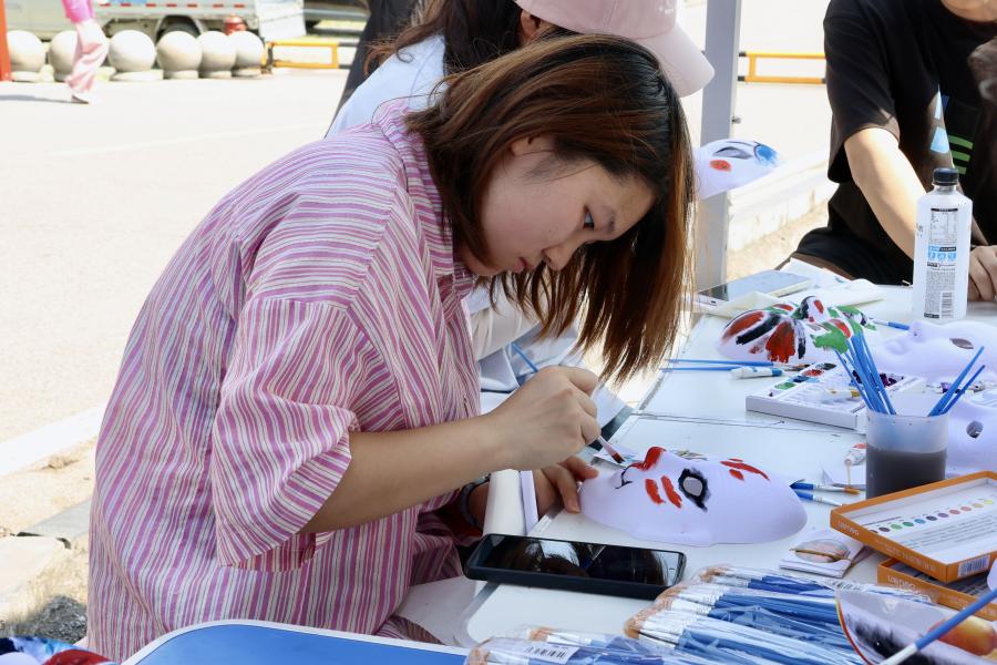 现场布置展棚若干。活动分为展览、体验、共绘非遗三个部分。展览环节,工作人员详细讲解展出的非遗物品的历史渊源、制作工艺以及传承现状,让现场观众对非遗有了更深刻的认识。体验环节,学生积极参与非遗制作,在工作人员的指导下,尝试扎染制作、书法等技艺,感受传统手工艺的精湛与魅力。共绘非遗环节,参与者凭借一幅“非遗之画”充分发挥想象力,用画笔描绘出心中的非遗形象,共同完成画卷的填色工作。