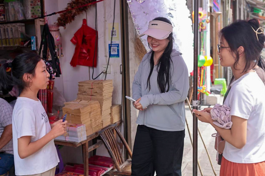 在非遗漆扇课堂中,支教老师通过生动的讲解和展示向学生介绍了漆扇的历史背景、制作工艺以及文化意义,用点、甩、弹、滑等手法在扇面上绘制出绚丽多彩的图案,激发了学生们的艺术感受力。学生们在老师的指导下亲手制作漆扇,感受传统文化的无限魅力。在非遗扎染课堂中,学生在支教老师们的指导下,以一块白布、一扎皮筋、一缸染料为材料,先扎后染,投入染缸,在搓揉之间,等待时间、空气与之产生连接,最后得到深浅不一的蓝,再挤水、氧化、拆结,体验传统的民间艺术。