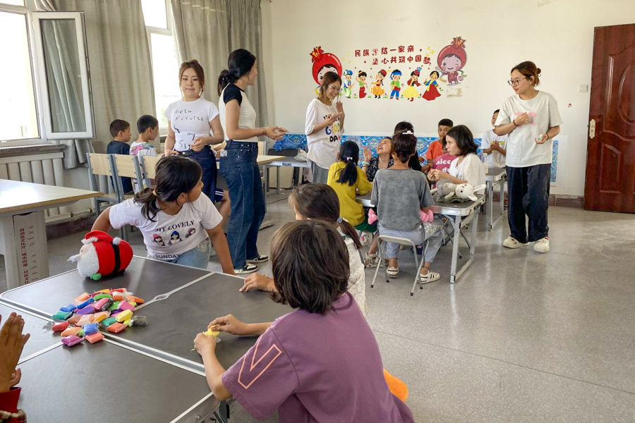 在为期一周的实践中,实践团成员与协海尔依其社区的儿童们共同开展了“红石榴·同心课堂”“爱中国·故事讲述”“绘‘疆’来·民族画卷”“共携手·社区服务”“话团结·推普使者”等一系列活动。这些活动不仅让团队成员亲身感受伊宁的风土人情,也使社区儿童的心灵受到了文化多样性的滋养,进一步增强了各民族之间的理解和尊重。