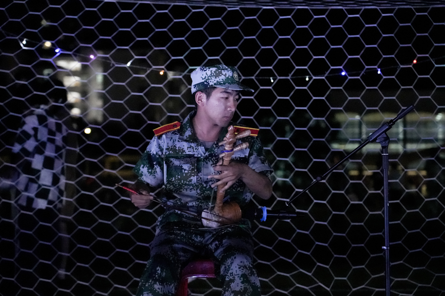 9月16日,文学与传媒学院在民族体育场举办新生军训中秋晚会。