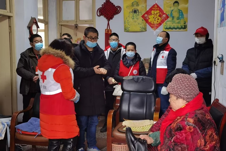 粟登平给抗美援朝老战士蒋年丰买生活用品