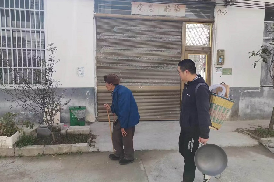 粟登平帮助邻居打扫卫生