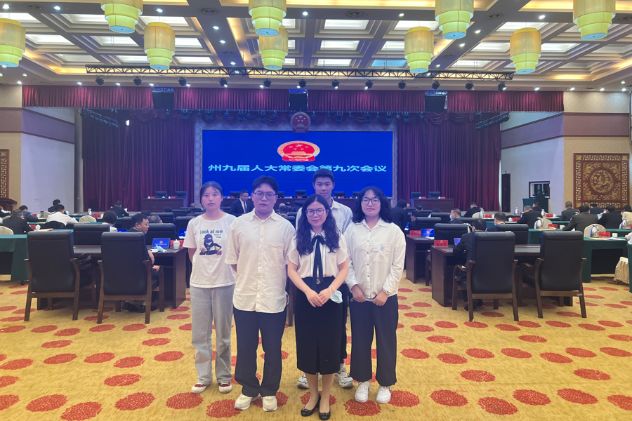 与参加学校第一届模拟立法大赛的同学合影