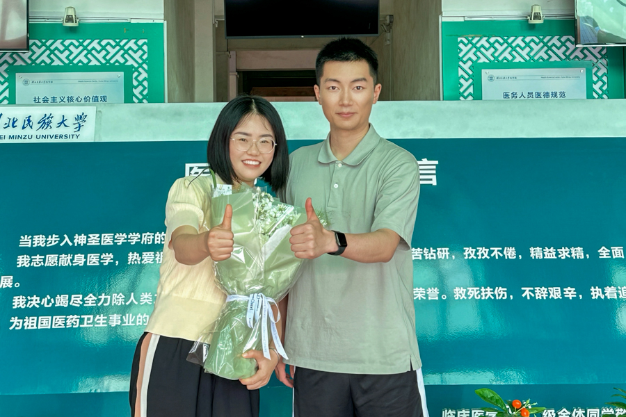 “非常感谢班主任刘可云老师!”在刘可云老师的支持帮助下徐阳明确了考研报考院校,考研复试如何准备……前进路上拨开团团疑云,点滴进步的背后是老师们的爱心助推。“遇到他们,是我的幸运!”说起老师们的教导,徐阳感恩之情无以言表,“医学部预防医学教研室舒宝连老师,给了我很多专业上的建议,让我重新捡起统计学和循证医学的知识。这些积累给了我考研意想不到的助力。”