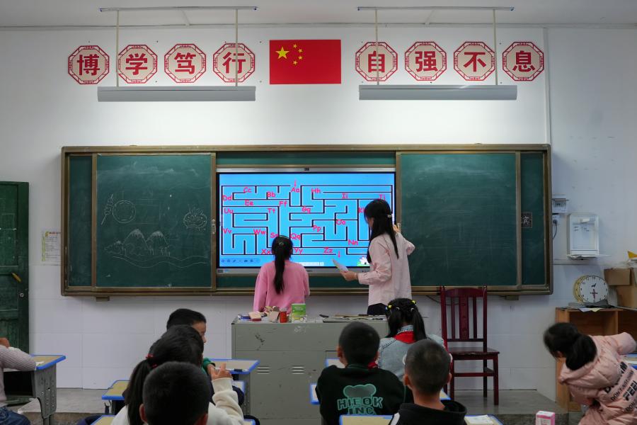 支教老师与小学生一起游戏