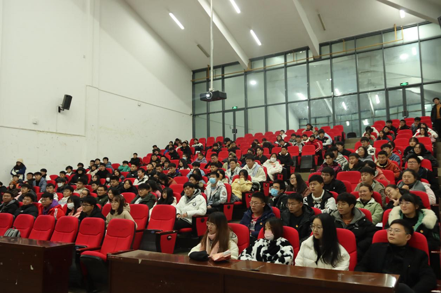 12月14日,州政协副主席谭建军在修远楼5B404报告厅为学生讲授专题思政课。信息工程学院部分学生干部和入党积极分子到场聆听。
