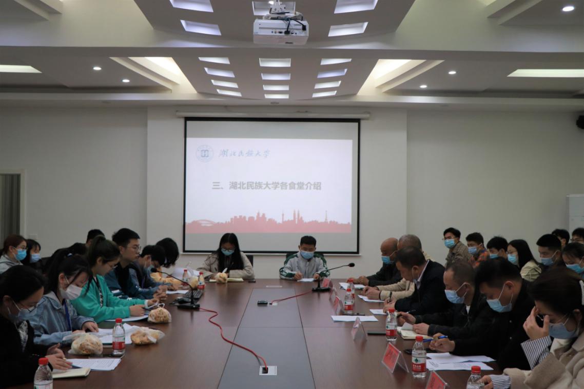 本网讯(记者 颜菲 李赵龙/文 冯影/图)4月14日,后勤集团饮食服务中心联合饮食管理委员会在学生公寓办公室208会议室举行4月交流会。后勤集团饮食服务中心主任周军,各食堂管理人员,饮食管理委员会学生代表参加交流会。