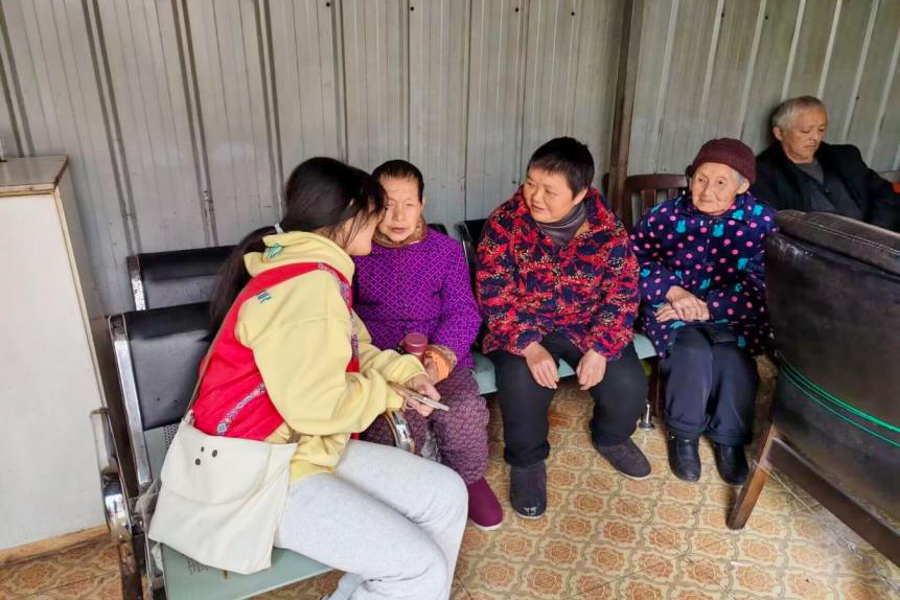 志愿者与老人交流谈心