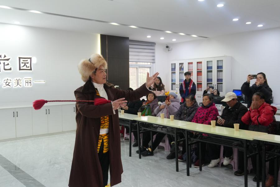 活动在汉服走秀中拉开帷幕。非遗社团成员身着各式汉服,进行精彩的汉服走秀表演,展示汉服之美。非遗传承人京剧表演环节,恩施州戏剧家协会副主席,恩施市老年大学京剧班教师陈国宜带来现代京剧表演《智取威虎山》选段“打虎上山”,唱出打虎时的惊险,动作连贯有力,体现出京剧的独特魅力。共剪窗花环节,志愿者分发红纸,在志愿者的悉心指导下,社区居民用剪刀小心翼翼地在红纸上剪着花纹,剪完后将窗花放进相框中表起来,便得到了一份独一无二的艺术品。