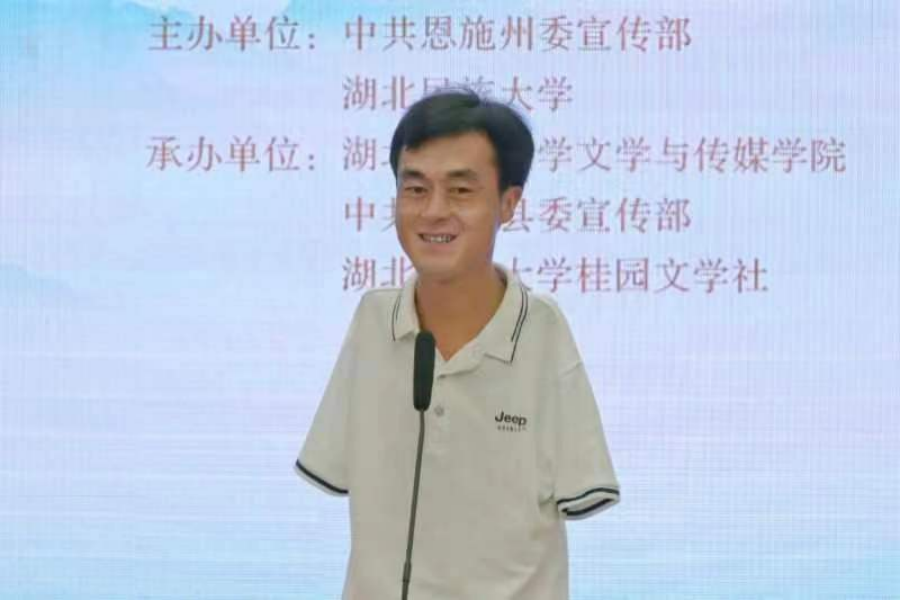 6月17日,由3044am永利集团3044noc、恩施州委宣传部主办,巴东县委宣传部、文学与传媒学院、桂园文学社联合承办的广播剧《没有翅膀的飞翔》原型人物事迹宣讲暨互动交流活动在学校行政楼三号会议室召开。活动由文学与传媒学院院长张宏树教授主持。