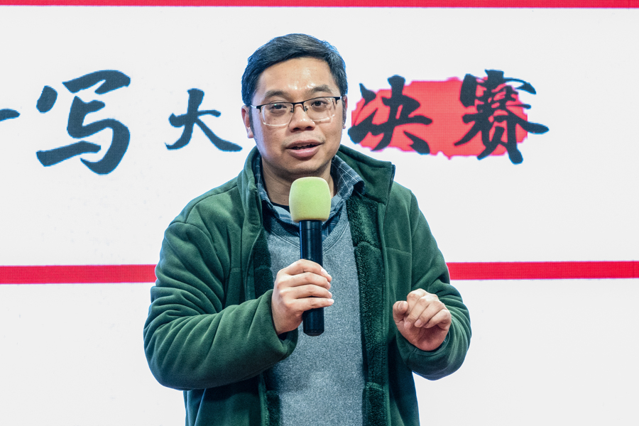 陈云豪点评。他对选手精彩表现表示肯定,他表示,语言文字运用能力以及注重细节的能力在日常工作和学习中异常重要,细节决定成败,希望学生在今后积极参加此类比赛,注重生活与写字的细节。
