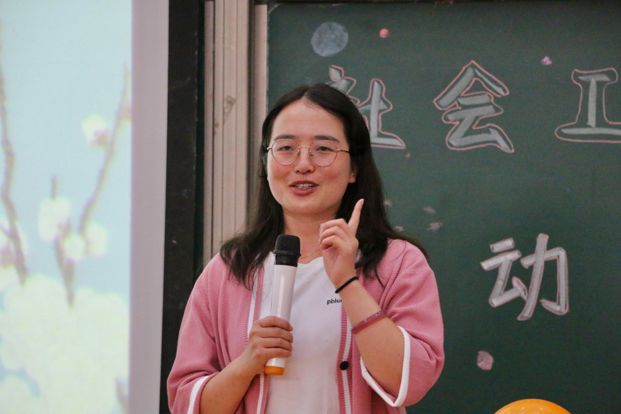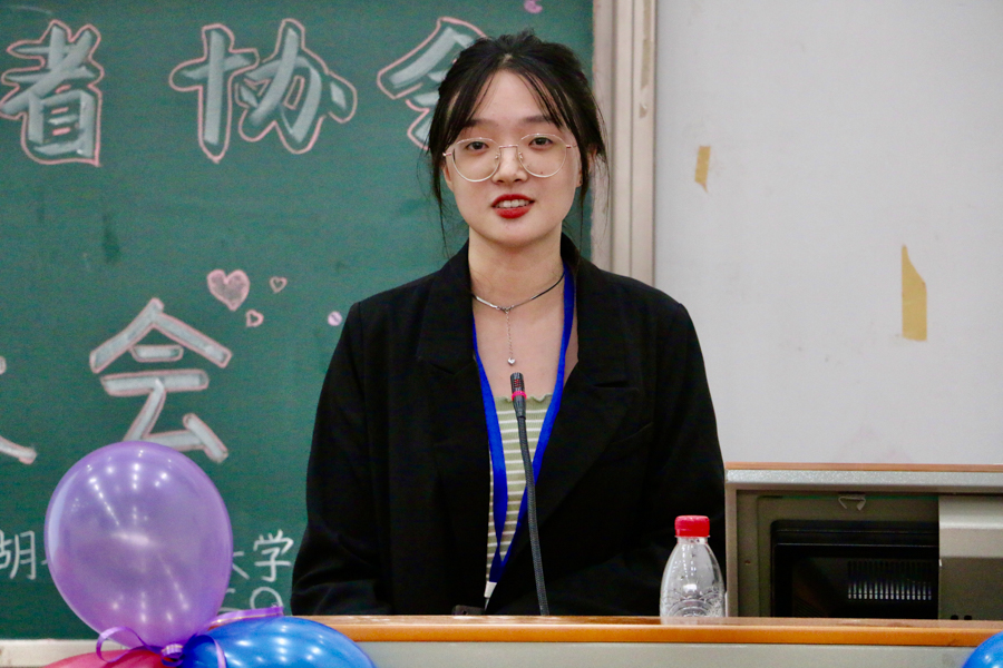在社团各部门负责人逐一上台为新入社成员介绍各部门职责后,社长罗周婕发言。她感叹,凭借对公益的热爱,从大一到大三她一直与社会工作者协会共同进步。她相信此次动员大会是一次全新的起点,在新老成员的共同努力下社会工作者协会将会继续发展,为公益贡献青春力量。