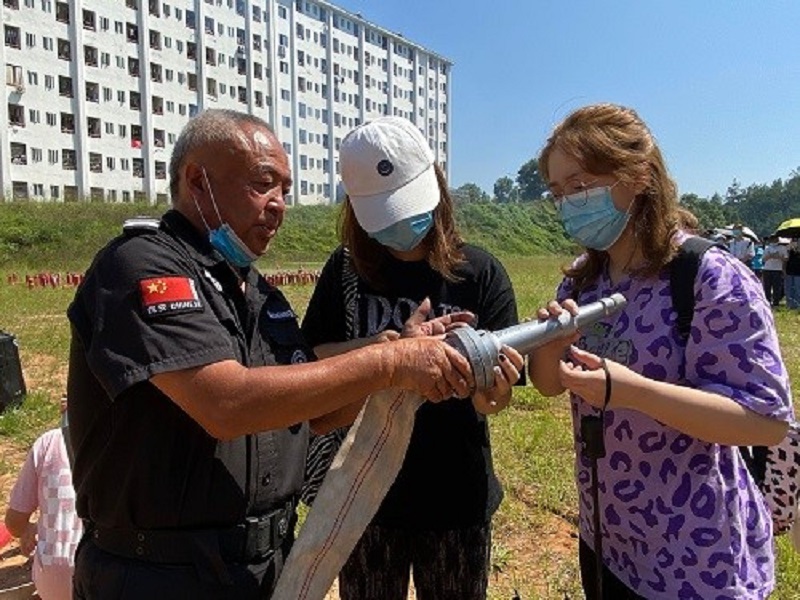 消防知识演习现场,校保卫处和州消防救援支队着重讲解了消防水带的连接、灭火器的使用方法,用高压水枪进行灭火演示,讲解和演示相结合,演绎生动。