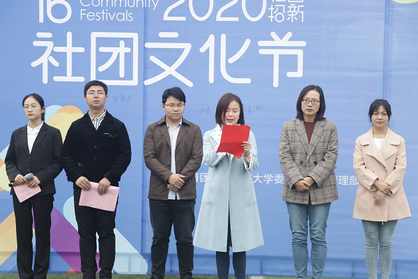 社团管理部部长黄胜兵发言,他对到场老师及学生表示欢迎与感谢,随后,黄胜兵对过去一年社团工作进行总结,并希望通过此次社团文化节,向学生提供锻炼机会与展现自我的平台,提高综合素质。