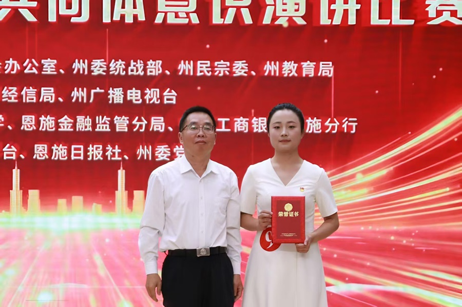 为深入学习贯彻习近平总书记关于加强和改进民族工作的重要思想,全面落实习近平总书记考察湖北重要讲话精神,推进铸牢中华民族共同体意识教育走深走实,永利官网积极组织师生参加恩施州举办的2025年“工行杯”铸牢中华民族共同体意识主题演讲比赛,分别获得教师组别赛、学生组别赛一等奖。