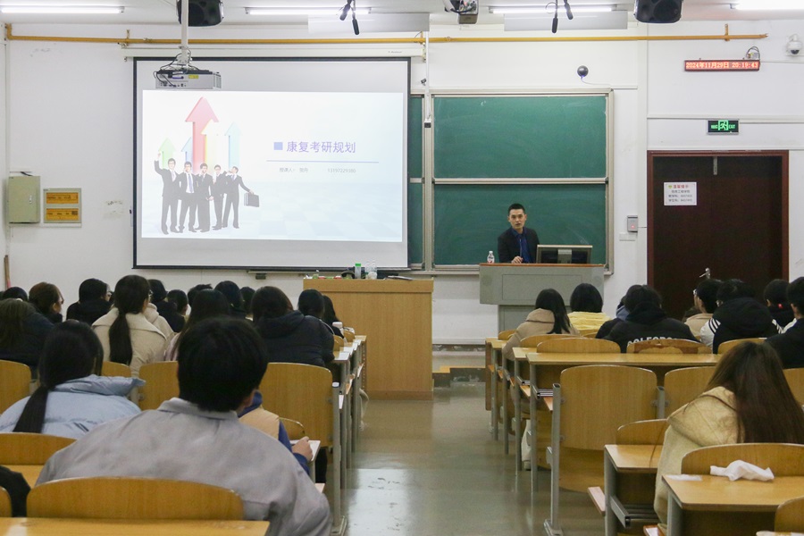 讲座的第二部分以“康复考研规划”为主题,由贺舟主讲。他分析了当前康复考研的形势和趋势,建议同学们充分了解自己的专业背景和兴趣方向,合理选择报考院校和专业。他鼓励同学们要制定切实可行的复习计划,保持良好的心态和积极的态度。