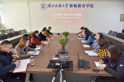 本网讯(记者 廖希为)11月25日,教师教育学院党总支理论学习中心组开展党的十九届六中全会精神专题学习,学院党政领导班子成员、党总支委员、科室负责人及师生党员代表参加学习。学校党委宣传部常务副部长罗翔宇、副部长万力、网络安全与信息化建设管理科副科长廖希为对学习进行了巡听旁听。学习由教师教育学院党总支书记刘际华主持。学习现场参学人员观看了十九届六中全会专题微视频《答卷人》,重点学习了《中国共产党第十九...