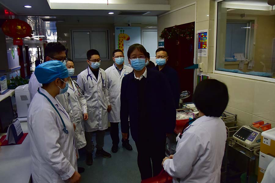 1月31日,时值除夕,副校长祝建波来到附属民大医院,代表学校看望慰问节日期间仍然奋战在工作一线的干部职工,为他们送上新春佳节的亲切问候和美好祝福。祝建波(右三)慰问医护人员同时,祝建波一行还深入病房看望慰问了住院患者,关心他们的治疗及康复情况,并送上传统佳节的慰问和祝福。祝建波(左一)看望住院患者学校办公室、附属民大医院等部门负责同志陪同慰问。