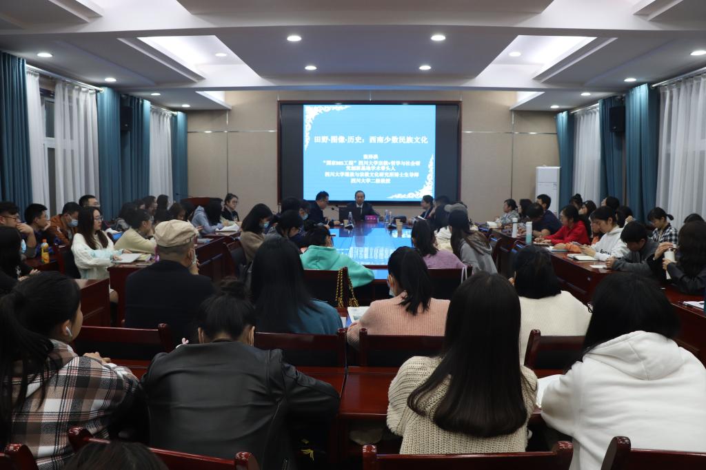 讲座现场 本网讯(通讯员 高羽 张娅琳 陈雨捷/文 王安蓓/图)10月18日,四川大学二级教授、博士生导师张泽洪受邀到文学与传媒学院智慧教室(一)开展以“田野·图像·历史:西南少数民族文化”为主题的学术讲座。研究生处处长申莉,民族学与社会学学院副院长杨洪林,老师赵杨,学报编辑部老师郭峰应邀出席此次讲座。该院院长罗翔宇担任主持人。 讲座中,张泽洪通过各种文献资料介绍历史民族学,包括历史学与民族学的关系、集...