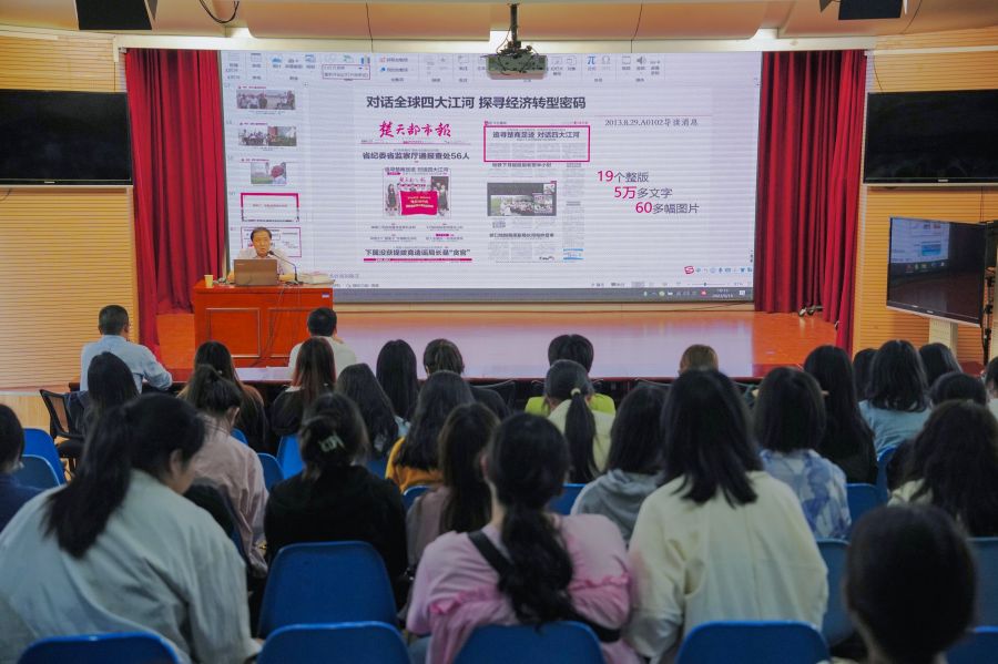 5月16日,湖北日报社高级记者张孺海在文传演播厅开展题为《策划——新闻价值呈现的最有效手段》讲座。讲座现场张儒海以发现老英雄张富清、对话全球四大江河探索经济密码、马路车窗抛物等经典新闻案例为切入点,解析策划在新闻采写中的重要作用及实践思路。他从发现、缘由、初心、影响、使命、传承六方面讲述自己为获得共和国勋章的老兵张富清做第一次新闻报道的采写经历,建议新闻学学子要顺应时代需求,发现、发掘新闻,做好策...