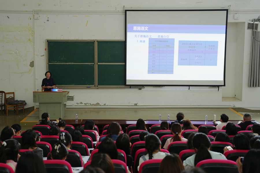 5月10日,文学与传媒学院在修远楼5A207教室举行以“原创命题—教师成长的新路径”为主题的讲座。恩施州教科院副院长向贤琼应邀担任主讲人,文学与传媒学院相关领导、老师及汉语言文学专业2021级全体学生聆了听座。该院副院长江佳慧主持讲座。讲座现场向贤琼以“两课”、成绩、命题三方面为例,对恩施语文现状进行分析并以此引入主题“原创命题—教师成长的新路径”,并从教师专业成长路径、原创命题基本思路和原创命题实践运用...