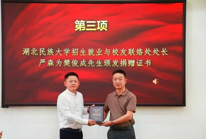 5月19日,3044am永利集团3044noc“俊成助学基金”成立大会在学工处二楼会议室举行,云鼎太(湖北)资源控股集团有限公司董事长樊俊成向11名家庭经济特殊困难的学生共计捐赠8.8万元。会议现场樊俊成分享了公司在恩施的发展情况,云鼎太(湖北)资源控股集团有限公司以人力、商贸、医疗、科技等四大板块为支撑,企业未来战略重心在恩施及西部方向。他表示,此次捐赠是一份社会责任,也是企业发展进程中应有的担当,未来愿在就业等方面与湖...