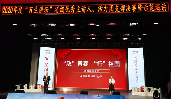 大赛现场本网讯 (通讯员 tw) 12月9日,由共青团湖北省委、湖北省学生联合会主办的2020年度“百生讲坛”省级优秀主讲人、活力团支部决赛暨示范巡讲在中南财经政法大学南湖会堂举行。永利官网1118402班团支部参加现场决赛,最终获得第二名,并被授予“金牌团支部”荣誉称号。 法学院政治学与行政学专业1118402支部历经层层选拔和遴选,从全省参赛的358个团支部中脱颖而出,入围参加省级决赛暨示范巡讲。活动现场1118402支部通过支部...