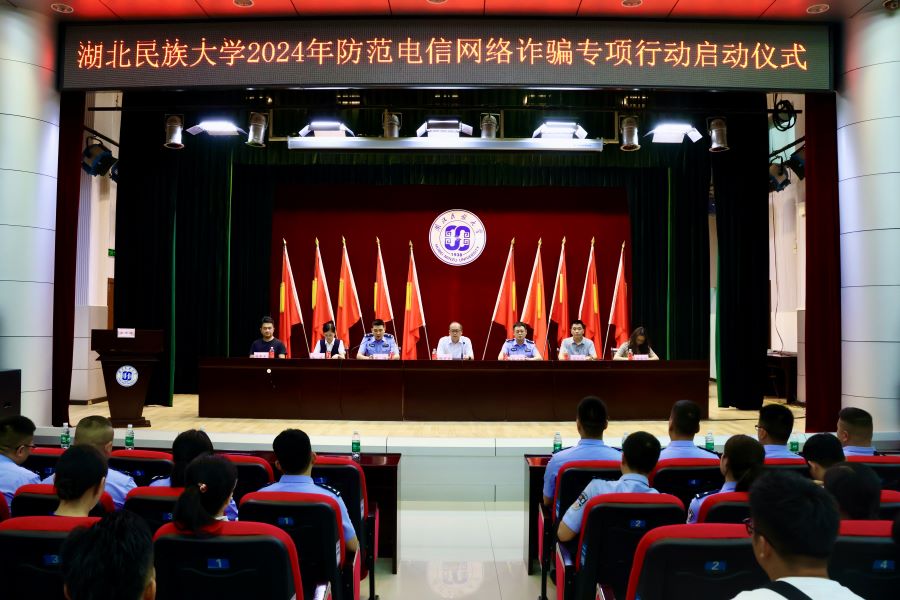 5月23日,2024年防范电信网络诈骗专项行动启动仪式在行政楼一号会议室举行,学校党委常委、纪委书记张宏磊出席仪式并讲话,恩施市公安局民警、中国工商银行恩施分行工作人员、学校相关职能部门负责人及各二级学院(部)师生代表参加仪式。保卫工作部部长周代明主持启动仪式。活动现场张宏磊在讲话中指出,要提高站位,深化认识,加强协作,强化联动,切实降低和减少校园电信诈骗案件;要夯实基础,明确重点,压实责任,营造氛围...