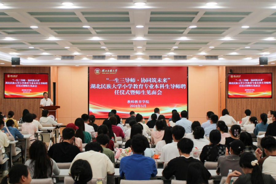 5月30日,教师教育学院本科生导师聘任仪式暨师生见面会在德智楼三楼远程观摩室举行。恩施市研培中心主任向彪,恩施市舞阳中学校长冯军,恩施市小渡船中学校长陈劲松,恩施市实验小学党委书记郭永等行业导师代表出席会议,教师教育学院全体教师和小学教育专业学生参加会议。会议现场教师教育学院党总支书记宁华宗主持会议。他表示,“一生三导师”是教师教育学院坚持以习近平新时代中国特色社会主义思想为指导,全面贯彻党的教育...
