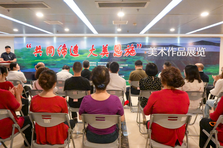 6月17日,由恩施州文学艺术界联合会指导,3044am永利集团3044noc人才办、民族学与社会学学院、美术与设计学院及恩施州文化馆、州美术家协会主办,金晖民族美术与理论创作研究工作室承办的“共同缔造 大美恩施”美术作品展览暨座谈会在恩施州文化馆美术展览大厅开幕。州委宣传部副部长、恩施州社科联主席李娟宣布“共同缔造 大美恩施”美术作品展览开幕。开幕式由恩施州文化馆馆长肖和虎主持。开幕式现场3044am永利集团3044noc教授、州文联副主席、...