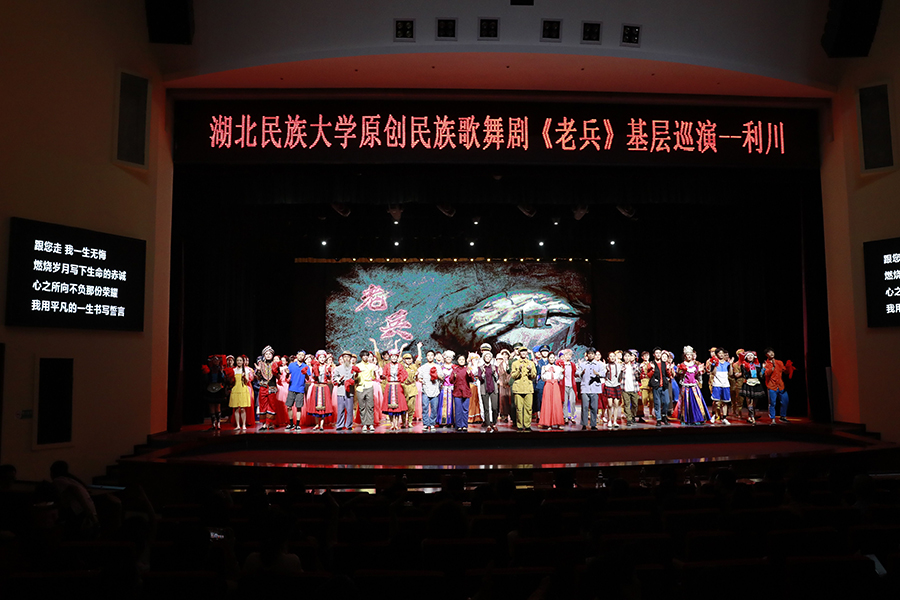 7月9日至10日,3044am永利集团3044noc原创民族歌舞剧《老兵》剧组来到利川,先后在利川传媒剧院、马前村文化广场开展巡回演出。“看完这部歌舞剧之后,我从他们战斗的地方感受到了张富清老爷爷和战友们同甘共苦的精神,让我对他肃然起敬。”7月9日,在利川传媒剧院,利川市体育路小学五年级学生黄逸哲在表演结束后感受颇深。利川传媒剧院巡演现场(图片来源:利川市融媒体中心)利川传媒剧院巡演现场(图片来源:利川市融媒体中心)7月10...