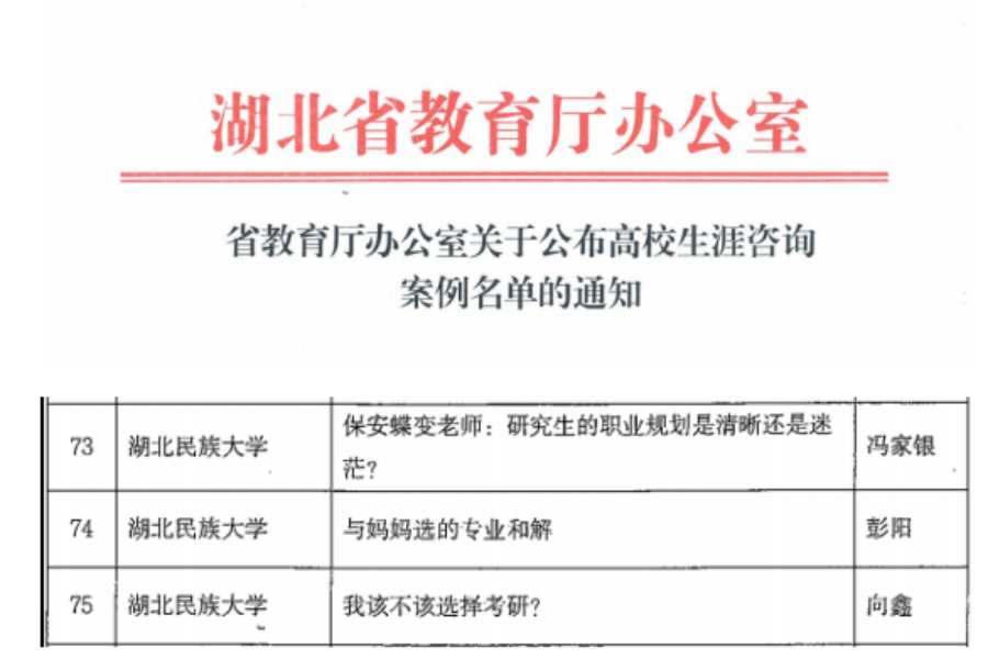 3044am永利集团3044noc3个案例成功入选湖北省高校生涯咨询案例