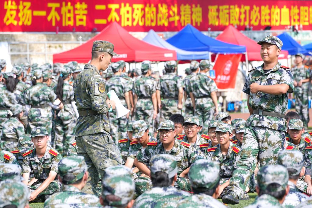 晨曦破晓,在五环运动场和民族运动场上,新生列队完毕。他们的脸上少了初来乍到的青涩,多了几分坚毅与自信。军训训练现场 炎炎夏日,学生从站军姿、稍息、立正、跨立、停止间转法等基本项目开始学起。每一个动作,教官都亲自分解示范与指导,从摆臂到踢腿,从握拳到收脚,都要通过教官严格把关。“抬头挺胸,收腹,目视前方,下颚微收,五指紧贴裤缝,身体微微前倾”,教官的口令,如雷贯耳,每一次动作的纠正,都在向标准看齐...