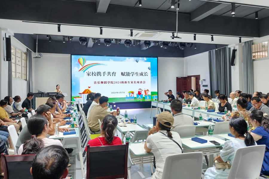 为进一步强化家校沟通,共话学生成长,9月7日,音乐舞蹈学院开展“家校携手共育 赋能学生成长”2024级新生家长座谈会,120余名新生家长参加座谈会。座谈会现场该院党总支副书记邓丽向新生家长的到来表示热烈欢迎和感谢,并介绍学校、学院的办学宗旨、基本情况、教育教学设施、办学成果等。她表示,希望家长包容学校改革发展中存在的困难和不足,强化家校共育学生成长的联动机制,学院将秉持“用心教育,用爱育人”的宗旨,致力...
