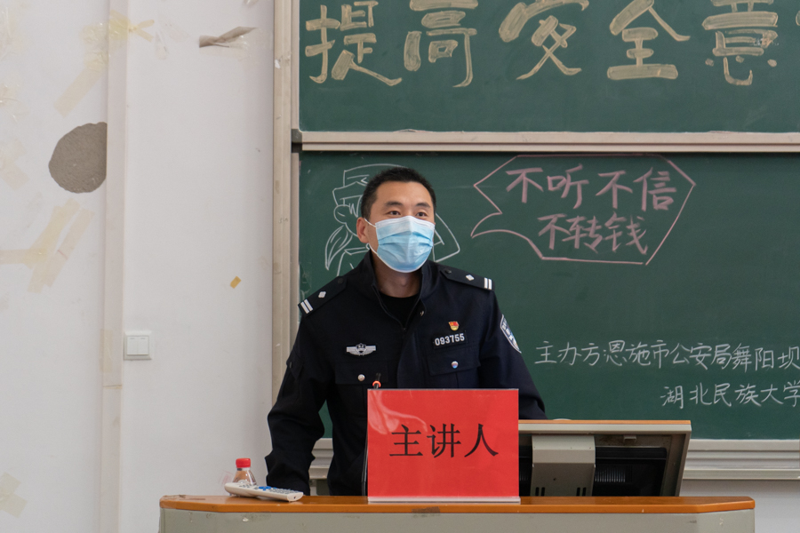 4月21日,永利官网联合恩施市公安局舞阳坝派出所在修远楼5A207教室举办“预防诈骗,提高安全意识”专题讲座。恩施市舞阳坝派出所副所长王烁担任主讲人,校团委副书记向驰,各学院(部)权益部20级、21级权益委员参加此次讲座。向驰表示,面对电信网络诈骗高发频发的现象,此次讲座将全面贯彻习近平总书记作出的重要指示,坚持以人民为中心,全面落实打防管控措施,坚决遏制电信网络诈骗犯罪多发高发态势,向学生普及电信网络诈骗知...
