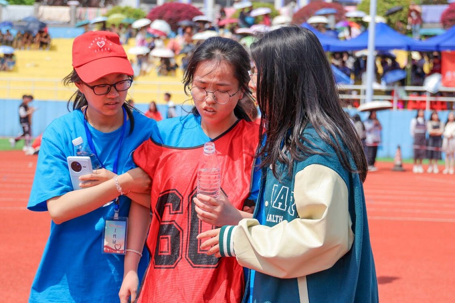 骄阳之下,田径场边。“在如此炎热的天气下,是场上每位运动员滴滴汗水的挥洒和观众的声声热浪欢呼支撑着我们志愿者的工作和服务。”医学部王瑞涵如是说。他们满怀赤诚、少言谦顺,将关爱送到每一位同学身边
