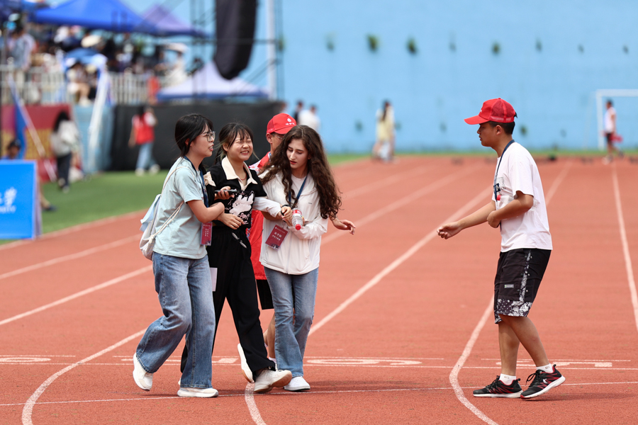 赛场内外,有一群洋溢着活力的志愿者。他们驻守在操场的各个角落,奔走在运动场之间,为运动员保驾护航,陪跑、递水、赛后搀扶,志愿者与运动员的双向付出,让人倍感温馨,他们都是这运动场上最美的荣光