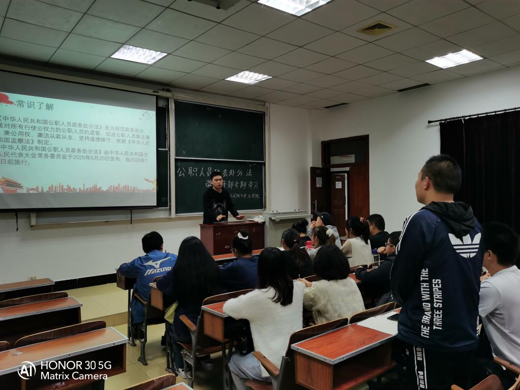 法学院学生干部、入党积极分子专题学习讨论《公职人员政务处分法》(许宗友提供)