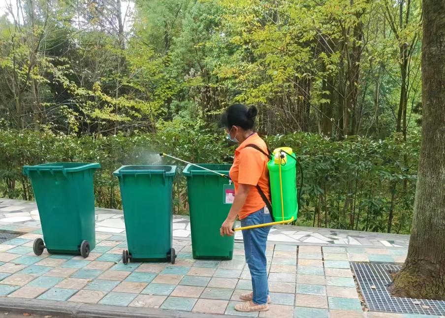 除了日常环卫绿化工作,在疫情期间,他们还负责对进出校园的车辆进行消杀。“每天出发前,我都会检查环卫工人的防护服、口罩、面罩、手套等防疫装备是否穿戴规范,消杀器材、消杀用品是否配齐,车辆是否正常。一切准备就绪才会出发,确保万无一失。”环卫绿化中心的王玲说道。