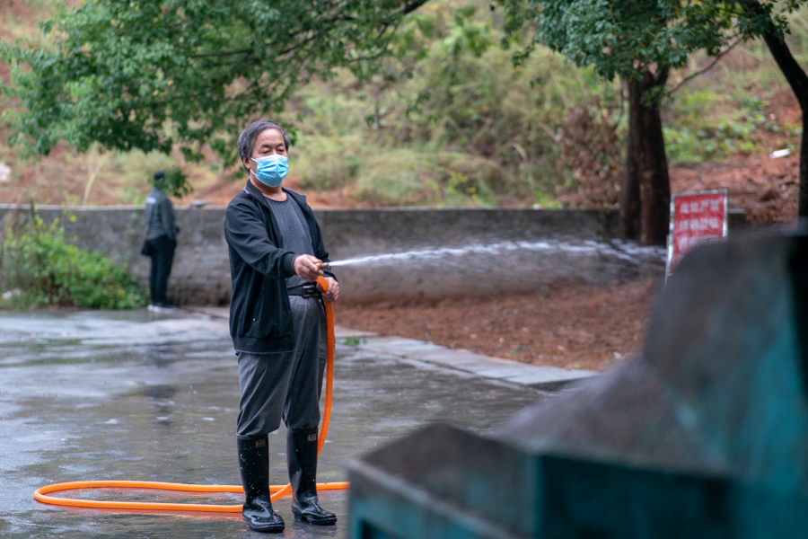 铁锹一铲接着一铲、扫帚一下接着一下、清运车一趟接着一趟。迎着晨光、伴着晚灯,已年近60的张华日复一日地坚持着这平凡的工作,但这种坚持又使得他不再平凡。张华原本住在校外,受疫情影响,他的住宿情况成了难题。“我住在压缩站旁的小屋子里,一开始我就坐在椅子上睡,但天气逐渐变冷,经常半夜睡不着。”他回忆道。但在他向后勤部反映后,领导很快就送来了棉被、床垫和各种生活物资。“书记、主任经常在晚上来看我,我感到很高兴,后勤保障部的领导对我们这些老同志非常关照。”