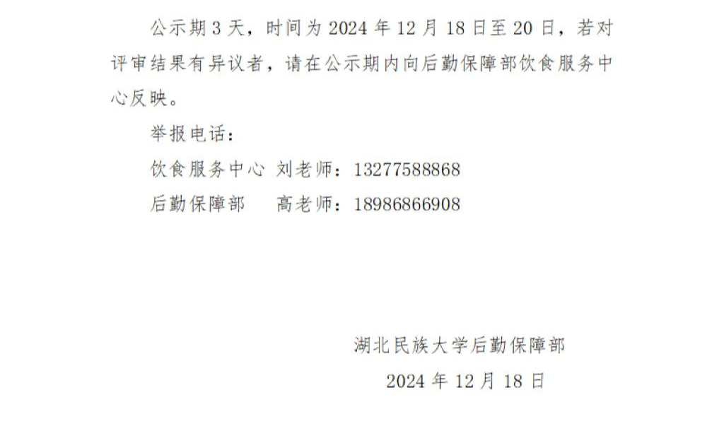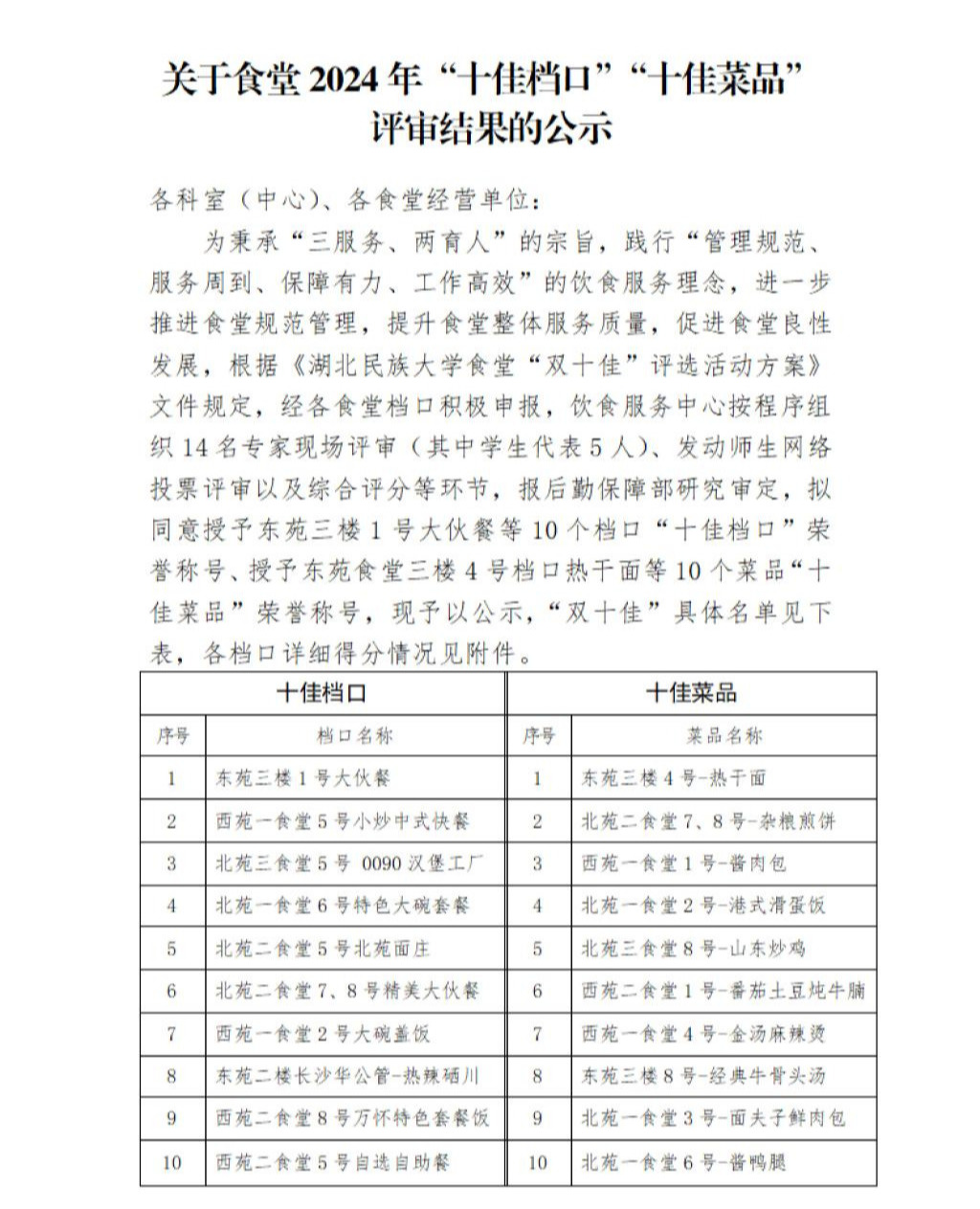 关于食堂2024年“十佳档口”“十佳菜品”评审结果的公示