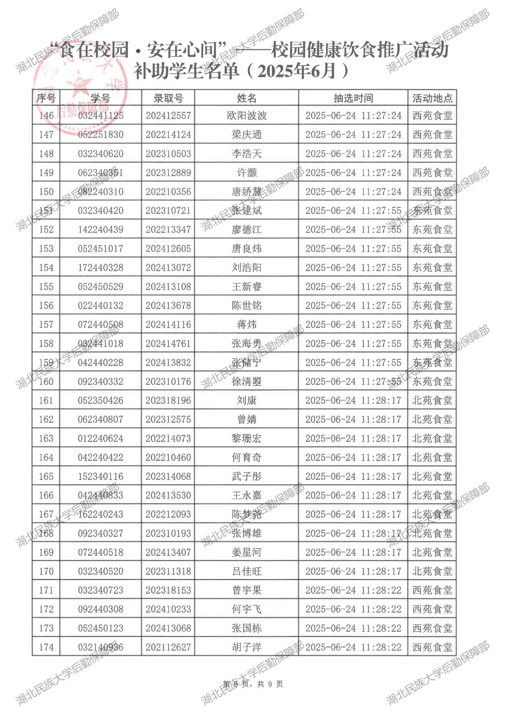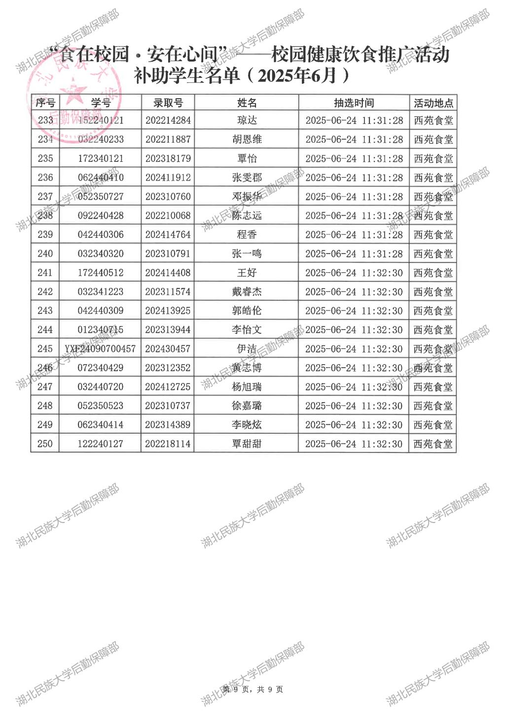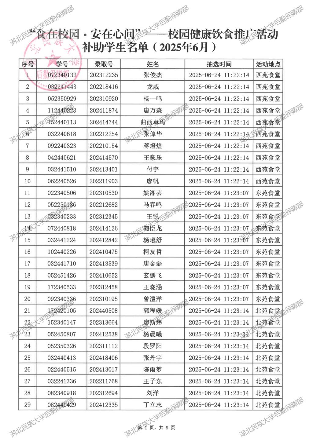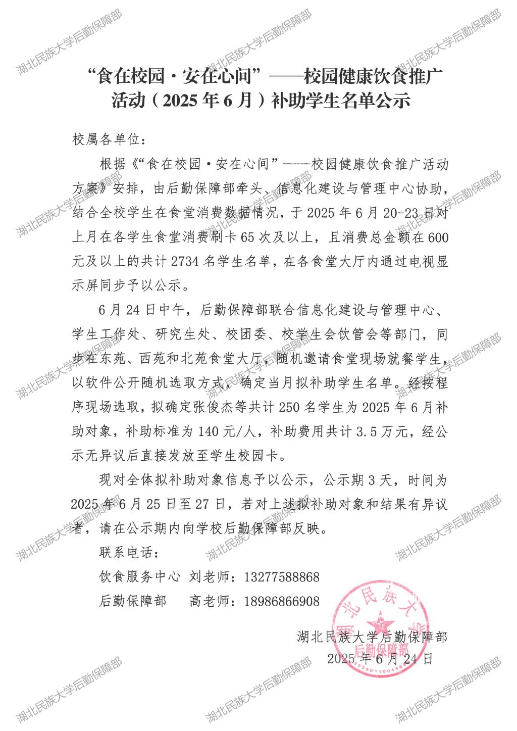 “食在校园·安在心间”——校园健康饮食推广活动(2025年6月)补助学生名单公示