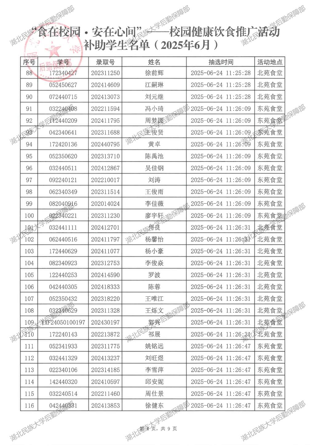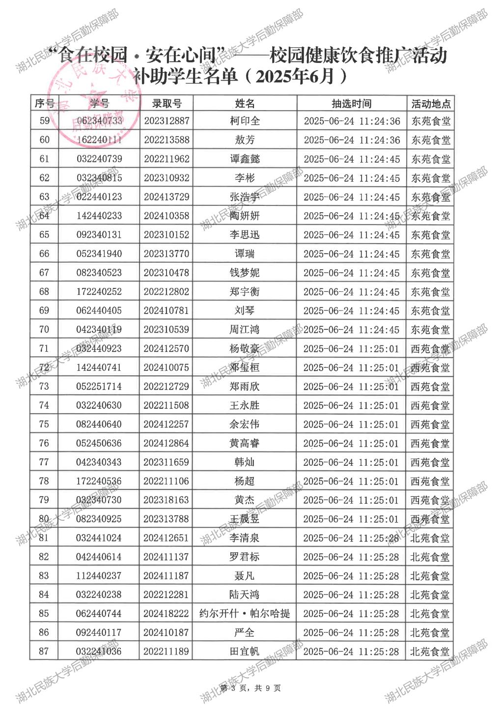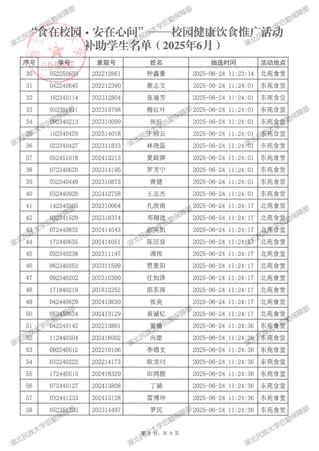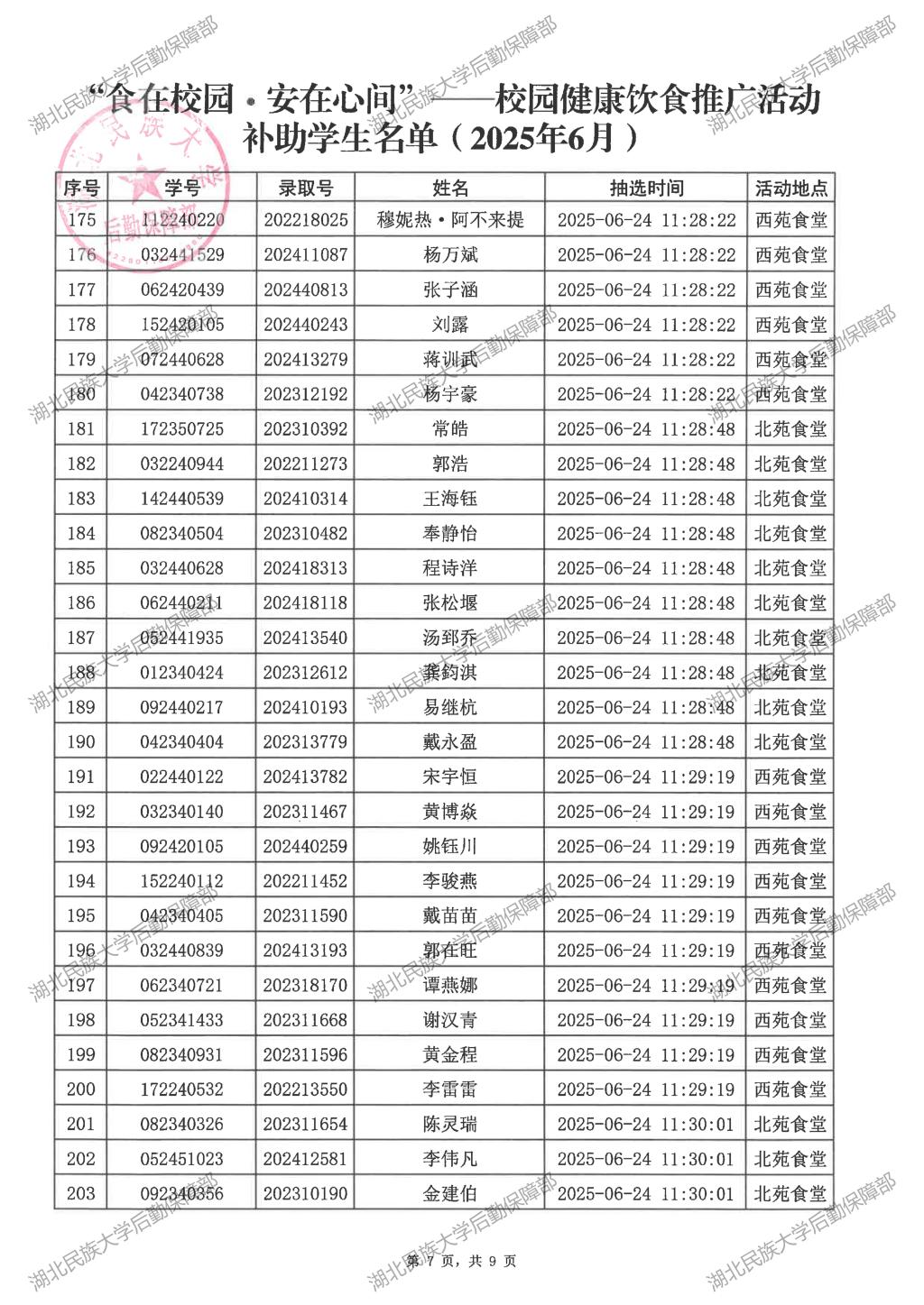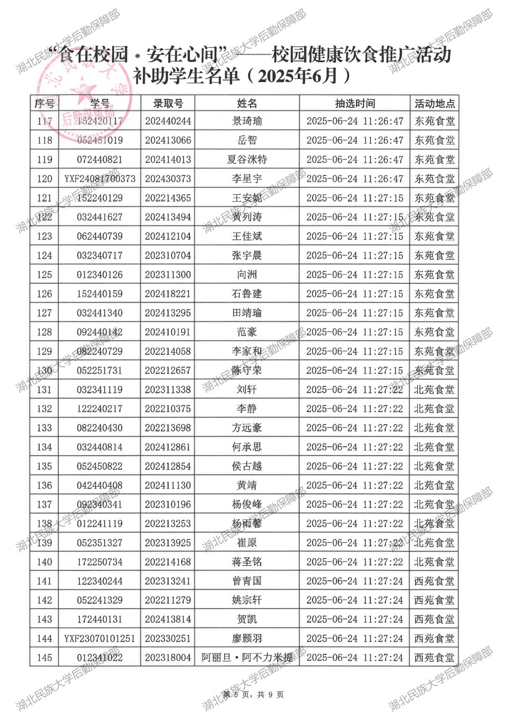 “食在校园·安在心间”——校园健康饮食推广活动(2025年6月)补助学生名单公示