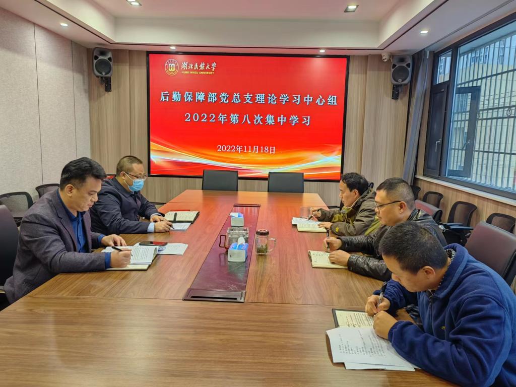 为深入学习领会党的二十大精神的丰富内涵、核心要义和实践要求,11月18日,后勤保障部党总支理论学习中心组开展了2022年第八次集中学习。党总支书记向诗亚主持学习,班子成员参加学习。