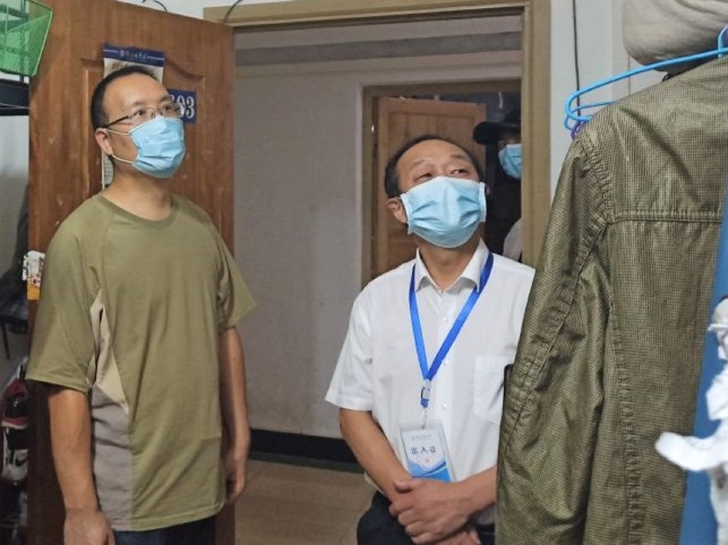 我院老师分组进入不同寝室,与学生们交流沟通。其间,张刚谈到,疫情当下,我们更应该做好个人卫生,养成的良好的卫生习惯。余爱农指出同学们要尽快调整心态,特殊时期更要注重自己的睡眠质量,养成良好的生活习惯。