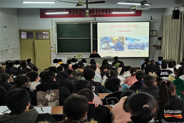 授课伊始,张刚以“练就过硬本领,勇担时代重任”为主题,从理想,爱国,担当,奋斗,本领,修身六个方面进行授课。首先,他指明理想是一种信仰,并以邓稼先的事例引出理想信念关乎国家未来,中国青年应当树立伟大理想,他谈到新时代为我们人生出彩提供了“大舞台”,广大青年应把握时代机遇,坚守初心、砥砺前行。随后,在爱国方面,他带领全体学生齐唱歌曲《我和我的祖国》,并谈到:“不论树的影响有多大,都扎根在土里,爱国是立身之本,成才之基,爱国是一种本分,是一种责任”。而后,他从“人之所厚,国之所需”两个方面讲述了担当的重要性。紧接着,他以张玉溪,姚登峰,龙同才加的故事为切入点,鼓励全体同学做奋斗青年。接下来,他指出“国无德不兴,人无德不立”,从新时代的角度向全体学生讲述本领和修身对自身的影响与重要性。最后,张刚提到“见贤思齐焉,见不贤而内自省也”,并鼓励我们传承中华民族优秀的传统文化,他希望全体学生能将这六个词牢记心中,不负青春,不负韶华,勇敢的朝着自身理想奋进。