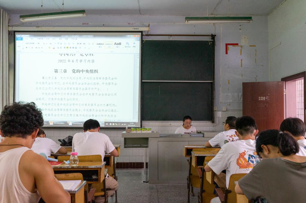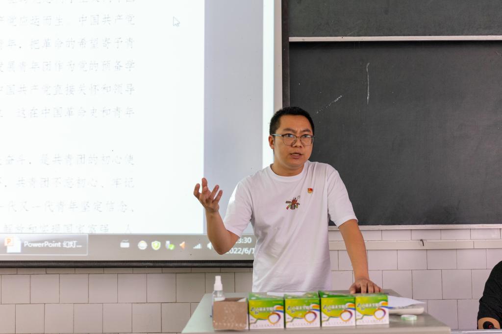 (本网讯 通讯员 郑萱/文 陆宇/图) 6月16日,我院学生党支部在2204教室开展以“下基层察民情,解民忧暖民心”为主题的六月支部主题党日活动。我院学生党支部书记张艺馨,组织委员覃昕、纪检委员彭召元,党员教师代表刘恒‘学生党员参加此次活动,张艺馨担任主持人。