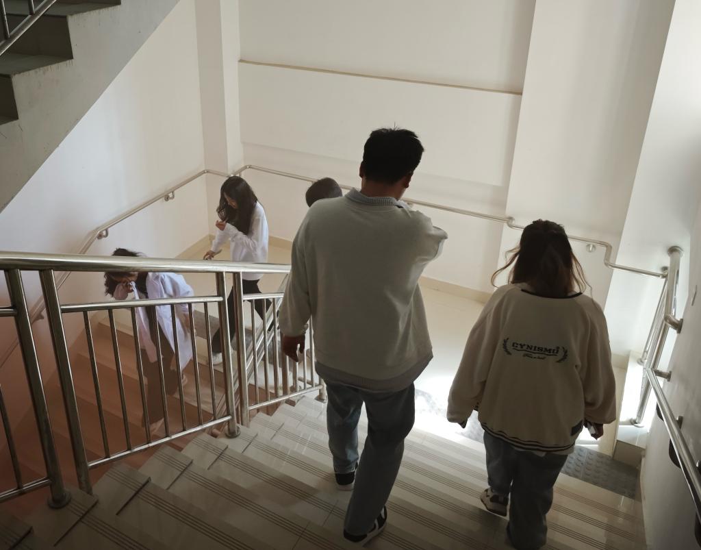 随着消防警报声响起,消防应急演习正式开始。师生严格遵循疏散要求,安静、快速、有序地撤离,迅速奔向消防出口,未出现拥挤、推搡、踩踏等意外情况,充分展现了良好的应急反应能力和团队协作精神。