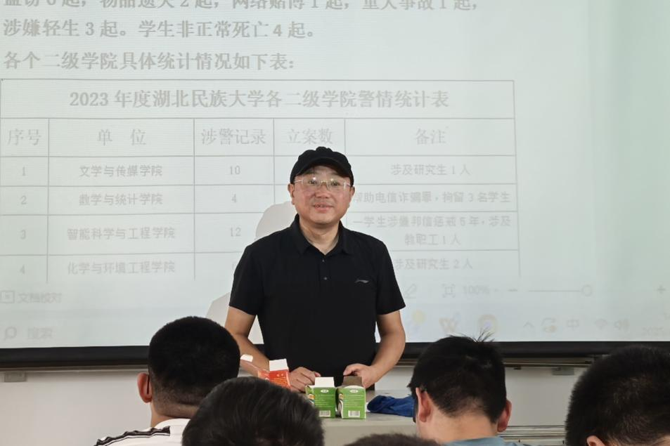 本网讯(通讯员 王珂 吴睿彤/文 郑浩鑫/图)为切实增强和提高大学生的安全防范意识和自我保护能力,我院于4月17日在2105教室成功举办了“百合花”安全宣传讲座。本次讲座由学校保卫处校园秩序科副科长舒吉高担任主讲,2022级和2023级部分学生参与。