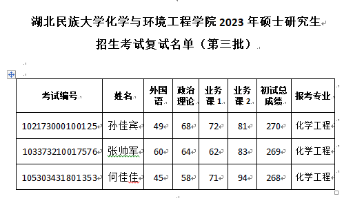3044am永利集团3044noc化学与环境工程学院2023年硕士研究生 招生考试复试名单(调剂第三批)